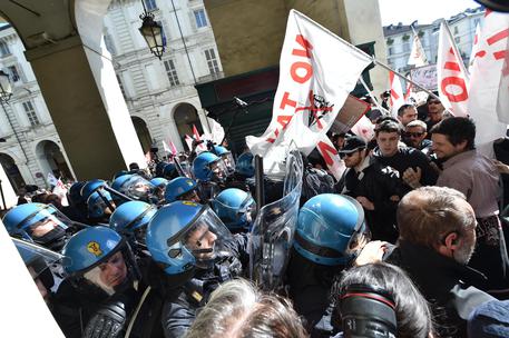 TORINO – Incidenti nel corteo del Primo Maggio, a Torino, con in testa Anpi, istituzioni e sindacati. Tensione molta alta in coda, tra il furgone con le bandiere Pd e lo spezzone del movimento No Tav. Insulti e spintoni e accuse dal movimento: «Ci hanno preso a cinghiate, pugni e bastonate. Il Pd ha assoldato i picchiatori». Decine di No Tav gridano: «Fuori il Pd dal corteo!». La polizia ha bloccato, con una carica e manganellate, un gruppo di No Tav che da piazza Vittorio stava cercando di raggiungere la testa del corteo. C’è stato qualche spintone e il movimento No Tav ha gridato: «Vergogna, fuori la Digos dal corteo. È lo spezzone del Pd o della polizia? Forse qualcuno ha pensato che non si possa sfilare al primo maggio. Togliete la polizia di qui», ha detto, prima che il corteo partisse, lo speaker dello spezzone No Tav.