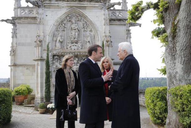 Mattarella si è poi recato al castello di Amboise, sulla Loira, dove è stato accolto dal capo di Stato francese, Emmanuel Macron, in occasione delle celebrazioni per i 500 anni dalla morte di Leonardo Da Vinci. Mattarella e la figlia Laura, con Macron e la moglie Brigitte, sono entrati nella cappella dove c’è la tomba di Leonardo da Vinci per un omaggio alle spoglie del genio italiano morto ad Amboise 500 anni fa. I presidenti Emmanuel Macron e Sergio Mattarella, dopo la visita al castello di Amboise, sono arrivati al castello di Clos Lucé, la casa di Leonardo da Vinci, per una visita ai luoghi in cui visse negli ultimi tre anni della sua vita.