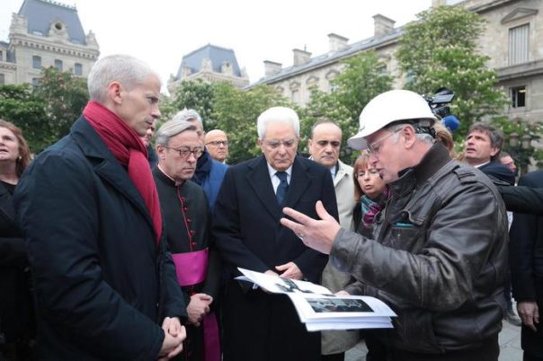 PARIGI – Il presidente della Repubblica, Sergio Mattarella, che si trova in visita in Francia per le celebrazioni del 500esimo anniversario della morte di Leonardo da Vinci, è arrivato a Notre-Dame per una visita alla cattedrale devastata dall’incendio del 15 aprile scorso. Con il capo dello Stato il ministro della cultura francese, Franck Riester.