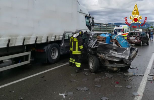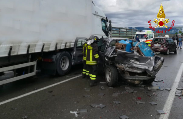 vigili del fuoco, i carabinieri e il personale del 118. La strada è rimasta chiusa. In base alle ricostruzioni dei carabinieri, le auto erano incolonnate quando è sopraggiunto il mezzo pesante che ha tamponato l”ultimo veicolo della fila che è andato a urtare la vettura che lo precedeva. L’uomo a bordo della prima auto tamponata, nato nel 1945 e residente in Mugello, è deceduto sul posto.