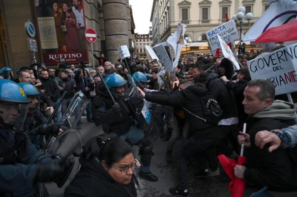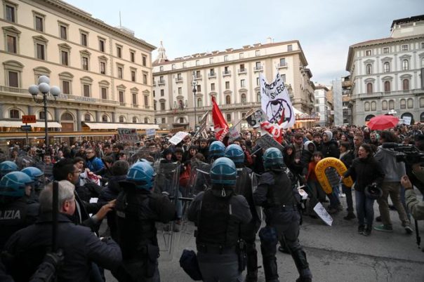 Nuova carica delle forze dell’ordine per contenere i manifestanti che stanno cercando di sfondare il cordone e raggiungere piazza Strozzi. Sono stati accesi da parte dei manifestanti alcuni fumogeni e lanciati contro la polizia. Sono salite a circa duemila le persone che si sono radunate.
