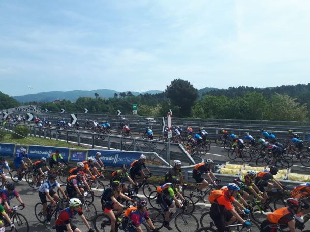 FIRENZE – Ha preso il via l’edizione record de «Il Giro in A1 Panoramica», organizzato da Autostrade per l’Italia. 1200 cicloamatori, partiti alle ore 11 di stamani da Barberino di Mugello, hanno invaso il tracciato appenninico dell’Autostrada del Sole, chiuso al traffico per l’occasione, in sella alle loro due ruote. I partecipanti hanno tra i 40 e 50 anni e sono arrivati da tutte le regioni italiane, soprattutto da Emilia e Toscana, ma anche da Calabria e Puglia, Lombardia e Veneto, per mettersi alla prova su un percorso autostradale d’eccezione. Un tour di 36 km tra andata e ritorno, di difficoltà medio-alta, da affrontare a velocità regolata, con l’assistenza della Scorta Tecnica degli esperti del Giro d’Italia 2019. Nel giro di due ore, i ciclisti sfideranno la propria resistenza sui saliscendi tipici dell’appennino,tra Barberino di Mugello e Pian del Voglio, partendo dai 350 metri sopra il livello del mare di Puliana per arrivare fino ai 726 del Valico Citerna, lungo la prima autostrada turistica d’Europa, immersa in una delle aree a più alta densità di Beni Unesco (come il centro storico di Firenze, il centro storico di San Gimignano, le ville e i giardini medicei della Toscana).