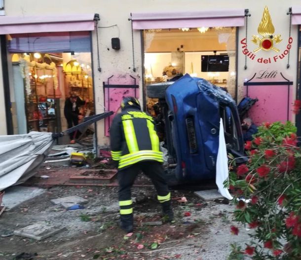 PISA – Ha fatto i cocci: nel senso che ha sfondato la vetrina di un bar con l’automobile, intorno alle 6.00 di stamani, 26 maggio, sulla via Aurelia. Per cause in corso di accertamento un giovane di 25 anni, pisano, a bordo della propria auto, ha perso il controllo della stessa ribaltandosi e andando a finire, appunto, contro la vetrata del bar. Fortunatamente non c’è stato nessun ferito tra il personale del locale che aveva appena aperto. In base alle prime informazioni, gli agenti della polizia municipale non escludono che il giovane conducente abbia sbandato all’ingresso di una rotatoria. L’auto ha poi urtando il marciapiede e si è ribaltata, andando quindi a sfondare con la parte anteriore la vetrata del bar e rimanendovi incastrata. Sul posto i vigili del fuoco e, per i rilievi, la polizia municipale. Il 25enne è uscito autonomamente dall’abitacolo semidistrutto della vettura, venendo poi accompagnato in ospedale per accertamenti.