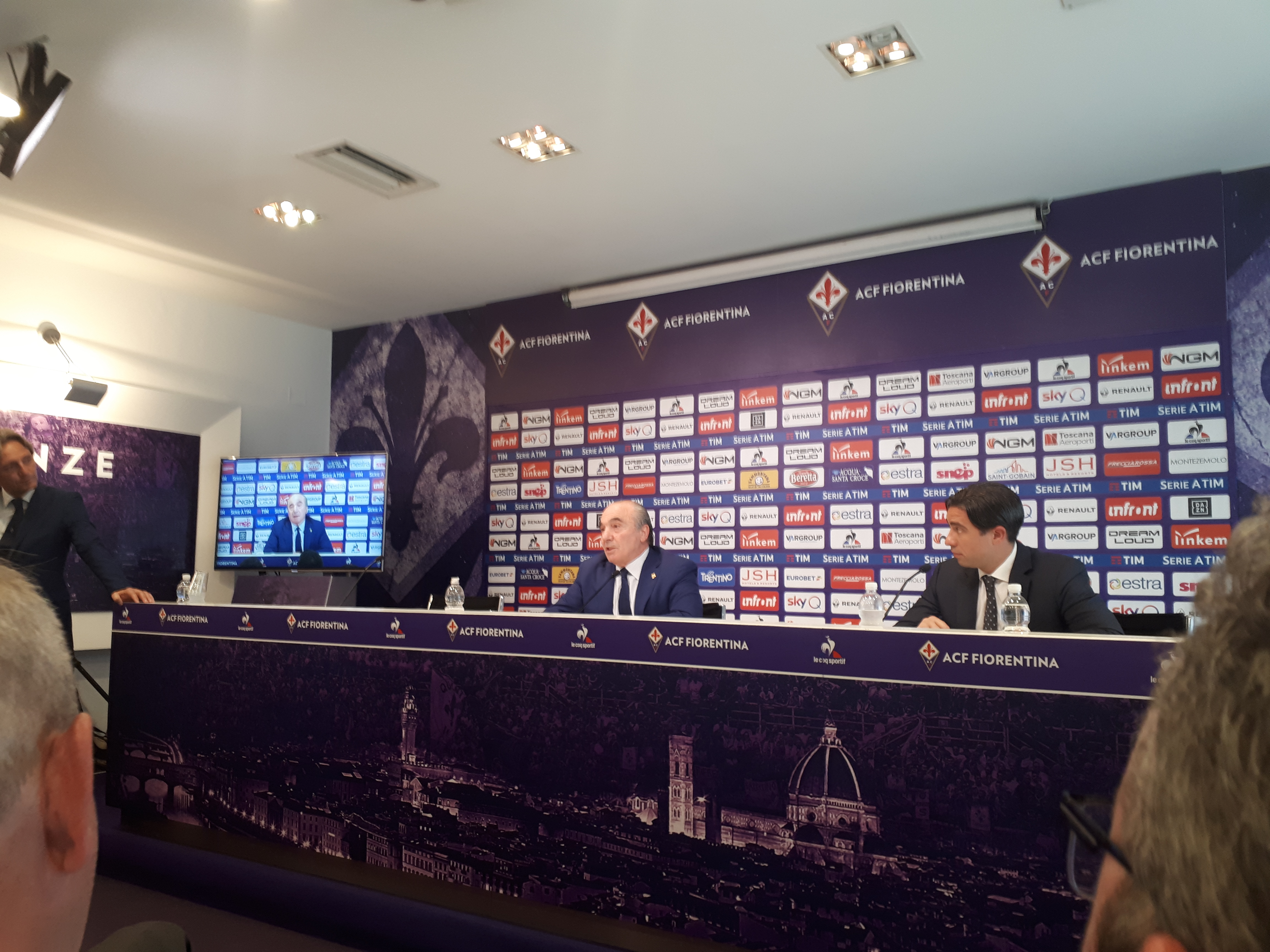 FIRENZE – «Sono fiorentino, sono gigliato. E penso in grande per la Fiorentina». E’ un Rocco Commisso show, in sala stampa, dove risponde per un’ora al fuoco di fila delle domande dei giornalisti. Ossia di giornalisti che vedono questa nuova proprietà come una liberazione. Commisso parla a ruota libera, un po’ in italiano e molto in inglese. E se la prende con l’interprete se non traduce bene. La prima notizia? La Fiorentina, fra un mese, volerà negli Stati Uniti per una tournée: i viola dovrebbero partecipare alla International Champions Cup, in programma dal 17 luglio contro Arsenal, Benfica e