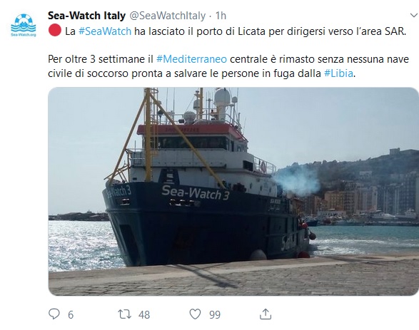 AGRIGENTO – Profittando delle decisioni della procura agrigentina, che non ha mai rilevato illegalità nell’azione della nave, Sea Watch salpa nuovamente verso la zona Sar libica a caccia di migranti da salvare, dopo le consuete chiamate a Alarm Phone. Lo dice la stessa ong su twitter, avvertendo che finalmente la zona sarà presidiata, dopo che per tre settimane nessuna nave Ong era stata presente. Ma comunque centinaia di migranti in pericolo erano stati presi a bordo dalla guardia costiera libica e riportati da dove erano partiti. Adesso si rinnoverà il fil rouge fra migranti, Navi Ong e autorità di soccorso, che vedranno queste ultime costrette a intervenire là dove lo decideranno le navi Ong, che sceglieranno sicuramente l’Italia come porto sicuro, anche se molto più lontano di altri. Ma la magistratura di Agrigento, interpretando le leggi a suo modo, ha deciso così, andando contro l’indirizzo del Governo e di tutti quelli che l’hanno votato per avere una politica di restrizione delle migrazioni irregolari. Siamo purtroppo un Paese a sovranità limitata, soggetto all’arbitrio dei giudici.