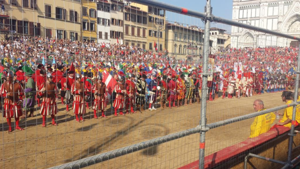 FIRENZE – Edizione del Calcio storico 2019. Si parte sabato, 15 giugno, con la semifinale tra Rossi e Verdi, per proseguire domenica, 16 giugno, con la semifinale tra Bianchi e Azzurri. La finale è in programma lunedì 24 giugno in occasione della Festa del Santo Patrono. Tutte le partite saranno trasmesse in diretta suu Rtv38: telecronisti Luigi La Serpe, Omero Cambi e Sandro Bennucci (il direttore di Firenze Post).