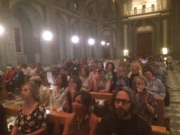 In una basilica gremita di pubblico Mons. Marco Domenico Viola, priore di San Lorenzo, ha salutato i presenti e illustrato l’iniziativa che ha visto per due giorni consecutivi la presenza di numerosissimo pubblico nel complesso mediceo-laurenziano. Il Maestro Umberto Cerini ha brevemente spiegato la composizione che è stata eseguita dall’ensemble Lilium Cantores da lui diretto. Applausi all’ingresso dei tre gruppi di cui l’ensemble si compone. Sono stati magistralmente eseguiti l’introito per le festa di San Lorenzo, e il Credo, il Sanctus, l’Agnus Dei della Missa Ducalis. A conclusione Aevum et Iter di Paolo Ramacciotti, mottetto per il quinto centenario della nascita di Cosimo I de’ Medici, prima esecuzione assoluta.