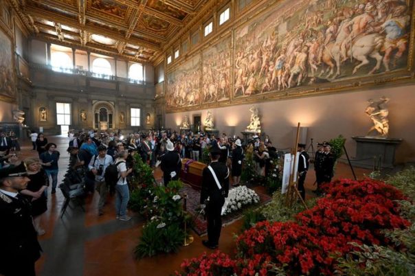 FIRENZE – Il feretro di Franco Zeffirelli è arrivato a Palazzo Vecchio, dov’è stata allestita la camera ardente, accolto dal lungo applauso di una folla di qualche centinaio di persone, che si è radunata sull’Arengario, in piazza Signoria. La camera ardente, nel Salone dei Cinquecento, sarà aperta fino alle 23, e poi il 18 giugno, dalle 9.00 alle 10.30. I funerali in Duomo sono fissati per le 11.00 del 18. Da Roma il feretro di Zeffirelli è arrivato intorno alle 11.10, accolto dal sindaco Dario Nardella e dal prefetto Laura Lega, con i figli adottivi del regista, Luciano e Pippo: quest’ultimo ha posato sulla bara una sciarpa della Fiorentina. Nel Salone il gonfalone, la giunta comunale e lo squillo delle chiarine: queste hanno poi lasciato il posto ad arie di Maria Callas, il sottofondo musicale scelto per la camera ardente. Su un grande schermo scorrono immagini di ritratti di Zeffirelli. Fra i primi in fila, il soprintendente del Maggio Cristiano Chiarot, Ermanno Daelli, Toni Scervino e Francesco Ghirelli. Anche la presidente del Senato, Elisabetta Casellati, è arrivata Firenze per rendere omaggio al maestro Franco Zeffirelli presso la camera ardente allestita nel Salone dei Cinquecento di Palazzo Vecchio.