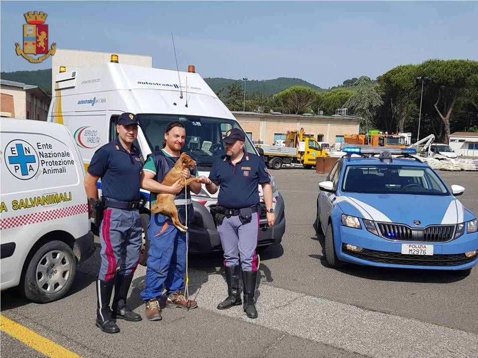 Autostrada A1: canina di 6 mesi abbandonata sotto il sole. Salvata dalla Polizia stradale