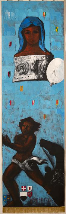 SIENA – Applausi per il drappellone realizzato dall’artista senese Massimo Stecchi che, il 2 luglio, si contenderanno le 10 contrade del Palio di Siena dedicato alla Madonna di Provenzano. Il ‘cencio’ è stato presentato nell’entrone di Palazzo pubblico. Sullo sfondo azzurro che evoca il cielo sono ritratti i simboli cari alla città con contrasti cromatici, vibrati e decisi, ricchi e maturi, dove una costante palette cromatica si rincorre, si mescola, si scontra per poi sposarsi in un armonico tutto di rossi, azzurri, neri e bianchi. Il rosso della ‘terra bruciata di Siena’ con linee e tratti scuri, quasi notte, si materializza e dà vita al volto della Madonna di Provenzano, che domina. Nel drappo anche il corpo robusto ed energico di un giovane festante con indosso solo una ‘balzana’. Un occhio a ciò che sarà, oggi e domani, nel messaggio carico di speranza e gioia affidato a un grande palloncino bianco in volo in un giorno di festa. Spazio poi all’artefice indiscusso della vittoria nella corsa, il cavallo.