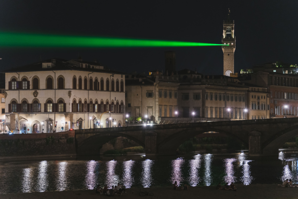 Firenze: 4 luglio, un fascio verde fra Palazzo Vecchio e ponte Vespucci