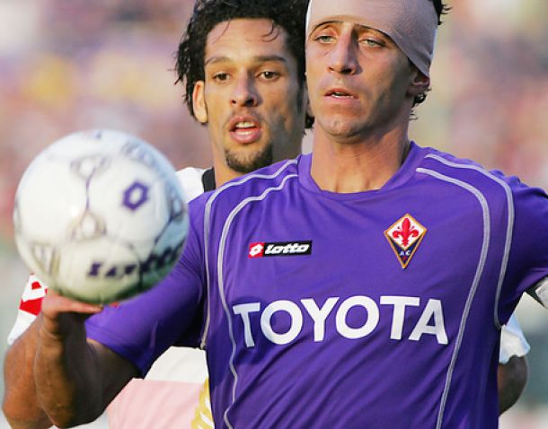Dainelli in maglia viola (pressato da Amauri contro il Palermo)