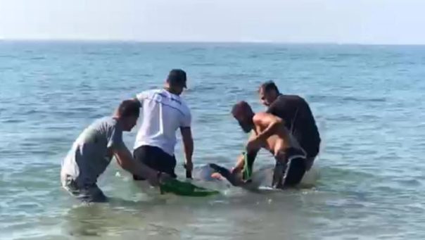 Piombino: delfino in difficoltà sul bagnasciuga aiutato a tornare in mare aperto