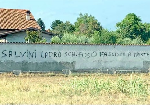BRESCIA – «Salvini ladro schifoso fascista a morte. Democratici all’opera a Rovato, in provincia di Brescia, (…) sorrisi e tanti bacioni». A denunciare la scritta, attraverso il proprio profilo Facebook, il vice premier Matteo Salvini. Una delle tante minacce di morte al vicepremier leghista, contro le quali non si leva il coro indignato dei democratici. Siamo tornati ai tempi lugubri dei cori «uccidere un fascista non è reato»?