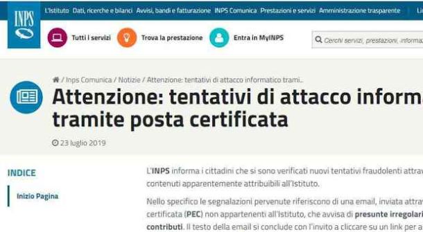 Mail false e tentativi di frode: l’Inps lancia l’allarme