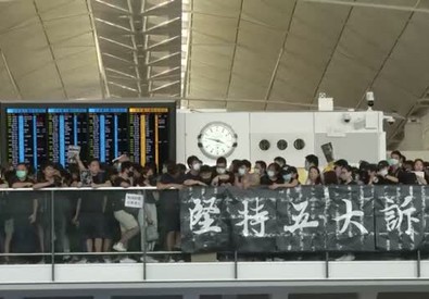 Hong Kong: aeroporto occupato da 5mila manifestanti. La polizia schiera cannoni ad acqua