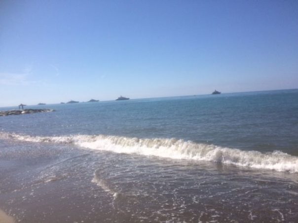 Infine da notare uno schieramento nutrito di lussuosi panfili a ridosso della costa fra il Cinquale e Massa. sarà per la coincidenza del Ferragosto (i ricconi parcheggiano il panfilo e poi scendono al Forte), oppure un sostegno, marino a Salvini contro le contestazioni?