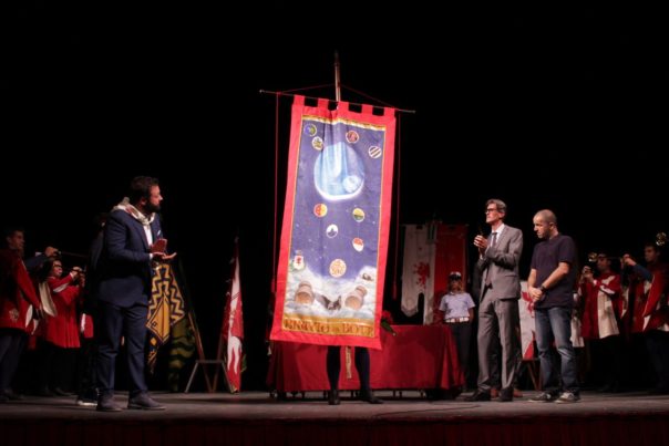 stato assegnato all’artista poliziano Daniele Brizzi. Nell’occasione sono state presentate le nuove bandiere del Gruppo Sbandieratori e Tamburini di Montepulciano, disegnate da Gabriele Torelli, e i nuovi costumi della cerimoniera e delle addette al corteo delle otto contrade, realizzati dalla costumista Noemi Grottini prendendo come ispirazione le opere pittoriche presenti nei musei poliziani e immaginati come angeli custodi.