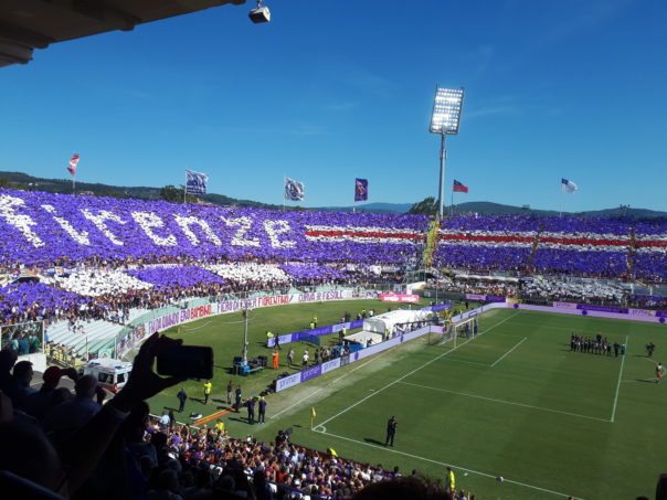 COREOGRAFIA – Curva Fiesole e Maratona sono unite, dopo i battibecchi dell’epoca Della Valle, da una splendida coreografia: fondo viola con la scritta bianca Firenze e i i colori della città, il bianco e il rosso. Esibizione di grande amore per la Fiorentina che esalta Rocco Commisso, sbarcato stanottedagli Stati Uniti e pronto ad abbracciare, in mattinata, i viola club di tutt’Italia. Cravatta viola, sorriso smagliante, prima della partita, Rocco Commisso saluta lo stadio strapieno: 40.312 spettatori. Oltre un milione l’incasso totale, che tiene conto anche della presenza record di 28.026 abbonati. Lì accanto al presidente, ma lui non ci fa caso, ci sono Luciano Spalletti, in attesa di una panchina, Luigi Di Biagio, il ct Roberto Mancini. E anche Matteo Renzi, con il sindaco Dario Nardella. Ora arrabbiati con il Pd perchè ha escluso tutti i toscani dal governo. Ma qui nessuno ci pensa. Occhio al campo.