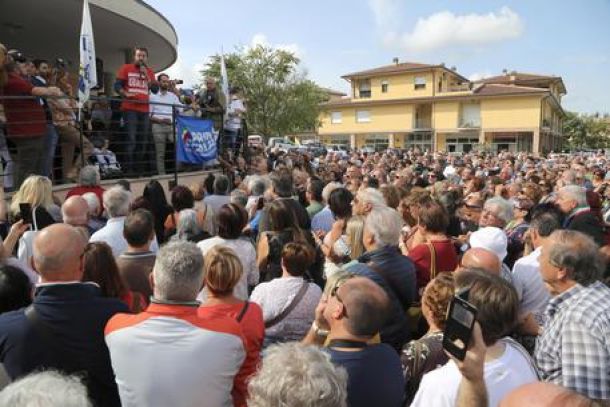 GUALDO TADINO – «Pensavo di morire senza vedere l’Umbria cambiare colore. Sappiamo che non sarà così»: lo ha detto Matteo Salvini a Gualdo Tadino durante una iniziativa per le elezioni regionali in Umbria. Alle quali il centro destra si presenta candidando come presidente la senatrice Donatella Tesei, proposta dal Carroccio. Rivolgendosi ai tanti cittadini in piazza, Salvini ha affermato che per la Regione “lavorerà chi merita e senza nessuna tessera di partito”. Ha quindi specificato che questa è una delle richieste fatte personalmente alla senatrice Tesei. “Noi ci impegniamo sul territorio perché onore e dignità valgono più di mille ministeri” ha inoltre affermato Salvini.