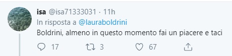 E non mi meravigliano le dichiarazioni di vicinanza ai caduti della Polizia da parte di esponenti della sinistra, pronti normalmente a condannare l’operato delle Forze dell’ordine e a esaltare le gesta dei migranti, uno dei quali è stato autore della strage di Trieste. Proprio quei migranti che la Boldrini da sempre definisce le nostre risorse, che ci pagano le pensioni. La Boldrini ha immediatamente dichiarato sui social il proprio cordoglio: «Una tragedia terribile che lascia senza parole. Vicina alle famiglie e ai colleghi dei due agenti dipolizia uccisi oggi a Trieste». Venendo sepolta da critiche e offese, ma anche confortata dal sostegno di alcuni suoi followers. Ecco una delle accuse più educate: