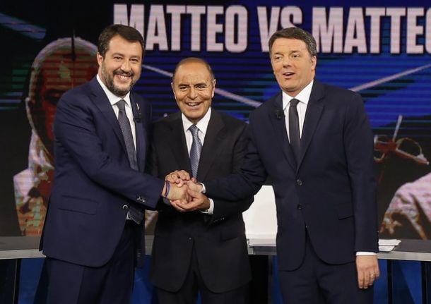Porta a Porta: Renzi contro Salvini. Arbitra Vespa (Rai 1, ore 22,50, dopo Liechtenstein-Italia)