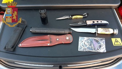 MONTEPULCIANO – Una pattuglia del Distaccamento di Montepulciano ha fermato un veicolo con targa straniera e a bordo tre persone, tutte provenienti dall’Ungheria, al cui interno erano stati occultati coltelli, manganelli e altro. E’ accaduto ieri, vicino al casello autostradale di Valdichiana, quando i poliziotti hanno fermato l’auto e notato che gli occupanti erano nervosi. A quel punto gli investigatori hanno controllato meglio l’auto e lo zaino di uno di loro, da cui sono spuntati fuori due coltelli a serramanico, un manganello tipo tonfa, un pugnale, un coltello multiuso, una bomboletta spray urticante e un cordino di acciaio. Alla richiesta di spiegazioni gli stranieri hanno affermato che erano in Italia per turismo e occasionalmente si occupavano di security in occasione di eventi e manifestazioni a Roma. La Polstrada non gli ha creduto, tant’è che li ha denunciati per porto ingiustificato di oggetti atti all’offesa, sequestrandogli tutto.