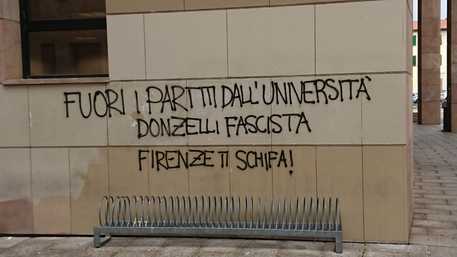 FIRENZE – «Fuori i partiti dall’università Donzelli fascista Firenze ti schifa» è la scritta in vernice nera comparsa su un edificio dell’università di Firenze, al Polo di Novoli, contro il deputato fiorentino Giovanni Donzelli di Fratelli d’Italia. Per il pomeriggio è annunciata una protesta del Collettivo di Scienze politiche durante la presenza di due parlamentari, uno, appunto, è Donzelli, l’altro Francesco Berti di M5s, come ospiti di un seminario. La scritta è visibile sul muro esterno di un padiglione.