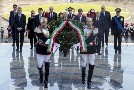 ROMA – Il presidente della Repubblica Sergio Mattarella ha deposto una corona d’alloro all’Altare della patria in occasione della celebrazione del 4 novembre, giornata dell’unità nazionale e delle forze armate. Il capo dello Stato era accompagnato dal premier Giuseppe Conte, dal ministro della Difesa Lorenzo Guerini, dai presidenti di Senato e Camera Elisabetta Casellati e Roberto Fico e dal capo di Stato maggiore della Difesa Enzo Vecciarelli. Presenti anche i capi delle tre forze forze armate. Al termine della cerimonia le Frecce tricolori hanno sorvolato piazza Venezia