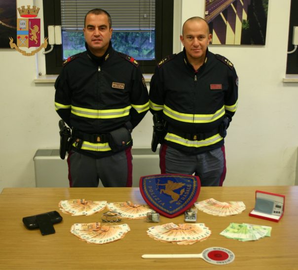 MASSA – Un uomo di 50 anni è stato arrestato dalla Polizia Stradale di Massa Carrara poiché trovato in possesso di quasi un etto di hashish, nonché 15mila euro in contanti, un bilancino di precisione e un tirapugni. Una pattuglia di Pontremoli lo ha fermato sull’A/15, vicino al casello di Aulla. I poliziotti hanno scorto nella portiera della sua Panda un oggetto in metallo che faceva capolino e, dopo averlo tirato fuori, hanno visto che era un tirapugni. Alla richiesta