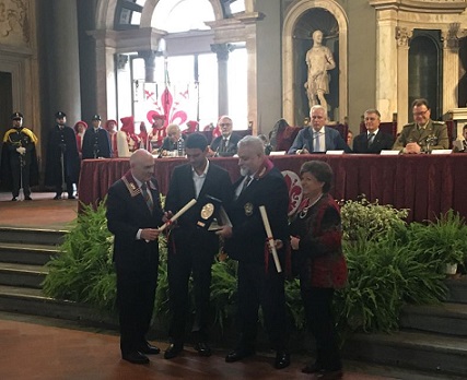 FIRENZE – Si e’ tenuta stamane nel Salone dei Cinquecento la 36esima edizione della tradizionale cerimonia nata nel 1983 per iniziativa dell’Istituto Scudi di San Martino e del suo Presidente Roberto Lupi . A far da cornice ad Autorità, Ospiti e insigniti la Banda Nazionale del Corpo dei Vigili del Fuoco giunta per l’occasione dalla capitale.
