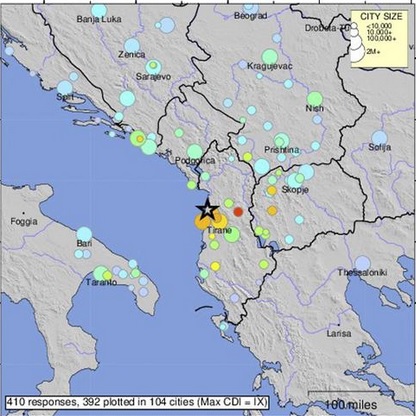 Secondo i dati dell’Istituto nazionale di geofisica e vulcanologia (Ingv) italiano e del servizio geologico statunitense Usgs, il sisma ha avuto ipocentro a circa 10 km di profondità ed epicentro tra Shijak e Durazzo. La scossa è stata distintamente sentita anche nella capitale Tirana, dove la gente è scesa in strada in preda al panico.