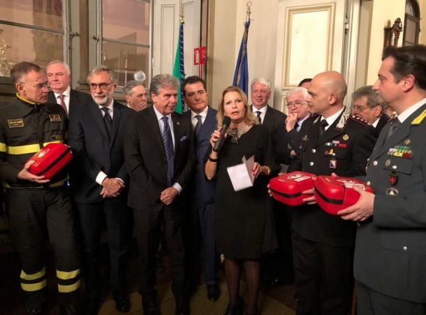 La consegna dei defibrillatori è avvenuta a Palazzo Medici Riccardi, alla presenza del prefetto Laura Lega e del presidente della Onlus Amici del Pronto Soccorso Stefano Grifoni, in occasione del tradizionale Brindisi degli Auguri di Natale.