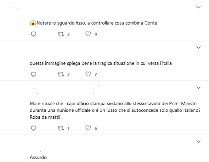 ROMA – Un lungo articolo di Dagospia rivela qualche retroscena delle trattative fra i leader europei nell’ultimo Eurovertice di Bruelles, inserendo nel servizio varie foto. Una di queste, come illustra la didascalia, immortala Conte, Merkel e Macron, impeccabili ma poco allegri commensali, e Rocco Casalino a capotavola. Partito dal Grande Fratello e assurto a Grande d’Europa. Sui social impazza già la polemica.