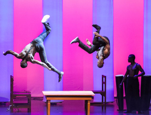 I Black Blues Brothers portano nel cuore il ritmo e l’energia della loro terra, il Kenya. Provengono da Nairobi dove erano coinvolti nel progetto di teatro sociale Sarakasi, fondato dall’alto funzionario ONU Rudy van Dijck e da sua moglie Marion Op et Veld per aiutare i giovani delle bidonville a superare le situazioni di disagio in cui vivono, ed è forse per questo che ancora oggi quando sono in scena scatenano tutta la loro gioia di vivere. Hanno scoperto che il circo è un potente mezzo di emancipazione e aggregazione ed ora lo trasmettono al pubblico sia con gli spettacoli che in occasione di workshop pratici di acrobatica organizzati da Open Circus, progetto di ricambio generazionale e formazione del pubblico sostenuto dal MiBACT. Un’esperienza multietnica, un modo per conoscere se stessi e i propri limiti, provando a superarli, per aprirsi agli altri collaborando con loro. 6.000 salti mortali e oltre 2 km a testa in giù durante gli show.