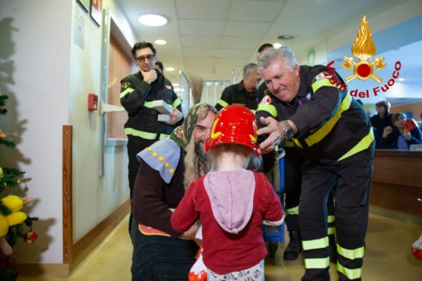 FIRENZE – Tradizionali manifestazioni dei vigili del fuoco per la Befana. Questa mattina i Vigili del Fuoco di Firenze e il personale dell’Associazione Nazionale Sezione di Firenze, hanno accompagnato la Befana che si è calata dall’autoscala raggiungendo una terrazza accolta da alcuni bambini ospiti della struttura ospedaliera Meyer. La grande Befana, ha fatto visita nei reparti distribuendo una calza e dei giochi a ciascun bambino donati dal Comando dei Vigili del Fuoco, dal personale e Associazione Nazionale di Firenze.
