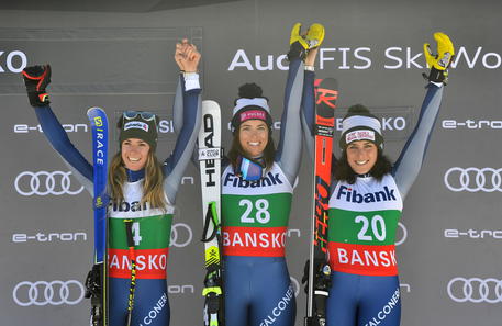 BANSKO (BULGARIA) – Trionfo azzurro nella discesa libera di Coppa del Mondo donne a Bansko, in Bulgaria. Le azzurre hanno fatto tripletta, vincendo con Elena Curtoni in 1.29.31, tempo con cui ha preceduto nell’ordine Marta Bassino (1.29.41) e Federica Brignone (1.29.45). Solo quarta, con 1.29.65, la fuoriclasse americana Mikaela Shiffrin, vincitrice della discesa di ieri, 24 gennaio, recupero della prova non svoltasi in Val d’Isere. Un podio tutto azzurro al femminile c’era gia’ stato il 14 gennaio 2018 nella discesa di Bad Kleinkircheim. Per la 28enne valtellinese Curtoni e’ la prima vittoria in carriera, e il quarto podio individuale.