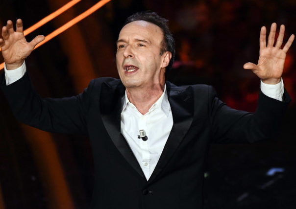 Roberto Benigni entra dall’esterno accompagnato dalla banda folkloristica Canta e sciuscia, accolto da Amadeus all’ingresso. Torna a nove anni dall’ultima esibizione, quando entrò in sella a un cavallo bianco per celebrare i 150 anni dell’Unità d’Italia. Ma il festival lo ha anche presentato nel 1980, era il 30/o, ora con il 70/o raggiunto quota 100, Sanremo può andare in pensione, dice il premio Oscar. Dopo un omaggio a Fellini e Sordi nel centenario, Benigni ricorda che nell’80 «vinse Toto Cutugno, eterno secondo che arrivò primo. Ora però è cambiato il sistema di voto, si può anche citofonare e dire: qui c’è gente che canta». Dopo la stoccata a Matteo Salvini, annuncia che canterà “la più bella canzone del mondo”, Il Cantico dei Cantici.