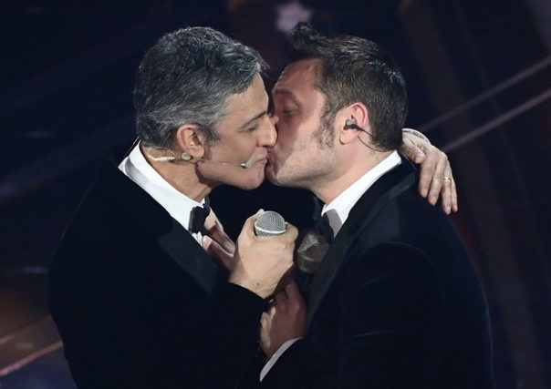 Ma il mattatore è ancora lui, Fiorello, dopo la serata libera. E onora la promessa: visti gli alti ascolti, arriva mascherato da coniglio. «Sono il figlio di Milly Carlucci, mi chiamo Coniglio Carlucci. Siamo una famiglia, siamo i Conigli Tattici Nucleari». Ma la sorpresa arriva subito dopo: sotto la testa da coniglio si nasconde Maria De Filippi. Fiorello ripropone all’Ariston la parodia di due sere fa e rivela: «Sotto lo smoking ho la tutina di Achille Lauro». Poi scherza con Amadeus: «Sembro Caniggia, oppure uno di Gomorra 3. E’ un festival straordinario. C’è Don Matteo, Il Cantico dei Cantici con Benigni pazzesco ieri sera, poi c’era Cristiano. Insomma c’è del vaticanismo qui». Accenna alla polemicuccia con Tiziano Ferro, «sei tu, è colpa tua», dice ad Amadeus. Poi lancia la sfida. «Se la puntata di stasera andrà bene, tocca a te domani iniziare con questa parrucca il festival. Con il trucco di Maria, la testa da coniglio in mano e la tutina di Achille Lauro». Fiorello canta Montagne verdi sulla musica di generale di De Gregori. Il duetto sulle note di Finalmente tu e il bacio sulle labbra: con un fuori programma si celebra sul palco dell’Ariston la pace tra Fiorello e Tiziano Ferro dopo le tensioni delle ultime ore. Sulla standing ovation per Ferro, entra sul palco Fiorello che lo abbraccia. «Nel ’96 – racconta Tiziano – alla mia prima gara di karaoke a Latina mi piazzai al terzo posto con Finalmente tu, un pezzo di Fiorello, e vinsi un’autoradio che oltre alla cassetta aveva il display digitale». Di qui l’idea di cantarla insieme: «Avevo il sogno di fare questa cosa a Sanremo da prima che iniziasse il festival, dice Fiorello». Accennano il refrain e su «Voglio guardare addormentarsi gli occhi tuoi…», mentre incrociano intensamente gli sguardi, Fiorello bacia a sorpresa Tiziano sulle labbra e commenta: «Ti posso dire? C’è del bacismo!». Poi saluta Victor, il marito di Ferro.