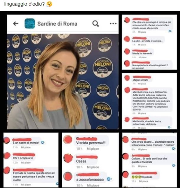 ROMA – Leggete gli amorevoli commenti che mi rivolgono sul gruppo ‘Sardine di Roma’. Ma questi signori sono quelli che scendono in piazza contro il linguaggio d’odio?». Giorgia Meloni pubblica sui social lo screenshot di una pagina delle Sardine di Roma piena di pesanti insulti nei suoi confronti. A stretto giro arrivano le scuse delle Sardine nazionali, che ricordano come gli insulti si trovano sulla pagina gestita da Stephen Ogongo che «non è più