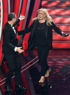 SERATONA – Apertura patriottica per l’ultima serata del festival di Sanremo: la banda dell’Arma dei carabinieri, che festeggia 100 anni di storia, sul palco esegue l’inno di Mameli. La scala sì, ma senza scarpe. Mara Venier entra in scena all’Ariston sfilandosi i tacchi a spillo. «Sono molto felice per te, davvero», dice ad Amadeus, che le consegna un enorme mazzo di chiavi. «Queste aprono tutti i camerini, domani questa è casa tua». La puntata di Domenica in che, come da tradizione, chiude la settimana del festival, andrà in onda direttamente dal palco.