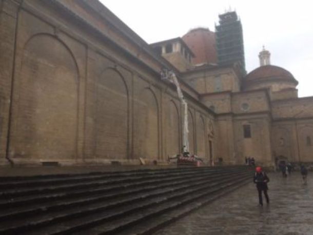 FIRENZE – Ancora una serie di verifiche dell’esterno della Basilica realizzate su mandato dell’Opera Medicea Laurenziana che, nel quadro del più ampio progetto sicurezza del complesso, dopo aver provveduto all’installazione e al perfetto funzionamento di telecamere all’esterno, verso piazza San Lorenzo, e all’interno, nei chiostri e nei sotterranei, procede regolarmente alla verifica e alla manutenzione di quelle parti esterne della Basilica di San Lorenzo che potrebbero essere soggette a degrado.