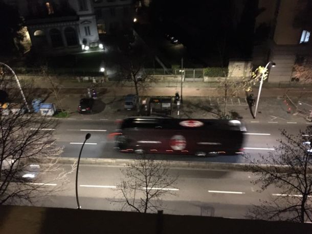 FIRENZE – Il nostro cronista ha colto, alle 19,05, il passaggio in viale Matteotti dell’autobus che trasporta la squadra rossonera al Frranchi dove, alle 20,45, è in programma l’anticipo di campionato con la squadra viola.