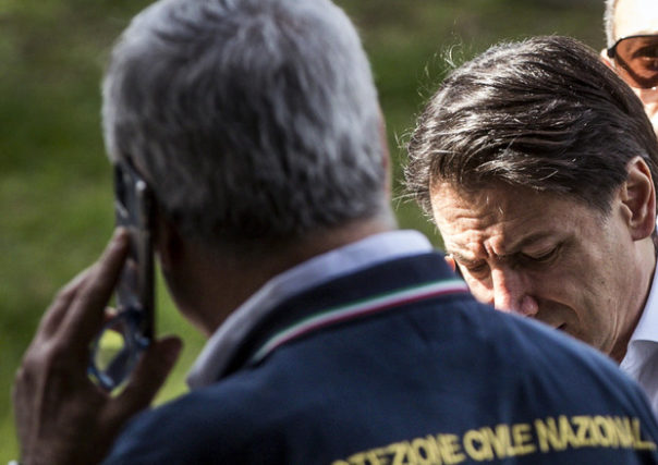 Il premier Conte dopo la riunione con la Protezione civile (Foto ANSA)