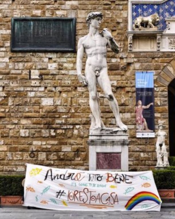 FIRENZE, – Una foto che ritrae la copia del David di Michelangelo sull’arengario di Palazzo Vecchio con ai piedi uno striscione con la scritta ‘Andrà tutto bene” anche in inglese e l’hashtag #iorestoacasa. A postarla sul suo profilo fb il sindaco di Firenze Dario Nardella che a sua volta scrive: Cara Firenze, andrà tutto bene. E noi gli rispondiamo: Grazie, caro sindaco, bastasse solo questo…