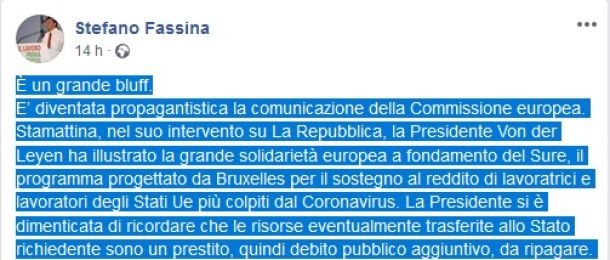 Coronavirus, Ue: scuse e promesse Von der Leyen, Stefano Fassina, è un grande bluff