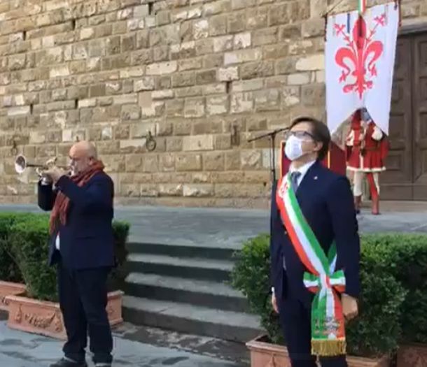 Il sindaco poi si è spostato sull’Arengario di Palazzo Vecchio dove, alle 10.30, alla presenza del Gonfalone, la prima tromba del Maggio Musicale Fiorentino Andrea Dell’Ira ha intonato Bella Ciao. Nardella ha poi fatto un breve intervento. «Celebrare il 25 aprile in questo momento di emergenza per il Paese ha ancora più valore perché le risorse migliori per superare questa crisi vengono dalle nostre radici, dai nostri valori, dalla nostra identità. Quando celebriamo il 25 aprile celebriamo il valore più profondo della libertà, il nostro paese, la nostra storia. Quella libertà che è il frutto del sacrificio della vita di donne e uomini e mai come oggi abbiamo bisogno di sentirci patria, paese, popolo per superare questi momenti difficilissimi. I prossimi mesi saranno molto complessi, sarà la sfida più ardua per la mia generazione e per tutti coloro che sono nati dopo la Seconda Guerra Mondiale. Così come gli italiani riuscirono a liberarsi dal nazifascismo e dare la libertà al loro paese e al loro popolo, oggi noi nipoti di quegli italiani dobbiamo vincere questa battaglia diversa ma non meno difficile contro la pandemia e contro una crisi economica e sociale da superare tutti insieme. Per questo il 25 aprile di oggi – ha concluso Nardella – è qualcosa di ancora più significativo e importante di quelli che abbiamo ricordato dalla Liberazione».