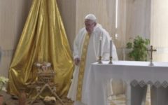 VATICANO – Il Papa, a Santa Marta, invita alla prudenza e alla obbedienza alle disposizioni perché non torni la pandemia. Scende in campo a difesa del suo pupillo Giuseppe Conte, che, vietando ancora le messe, sembrava averla fatta fuori dal vaso, provocando le proteste della Cei. «In questo tempo nel quale si incomincia ad avere disposizione per uscire dalla quarantena – ammonisce il Papa nell’intenzione di preghiera – preghiamo il Signore perché dia al suo popolo, a tutti noi, la grazia della prudenza e obbedienza alle disposizioni perché lapandemia non torni».