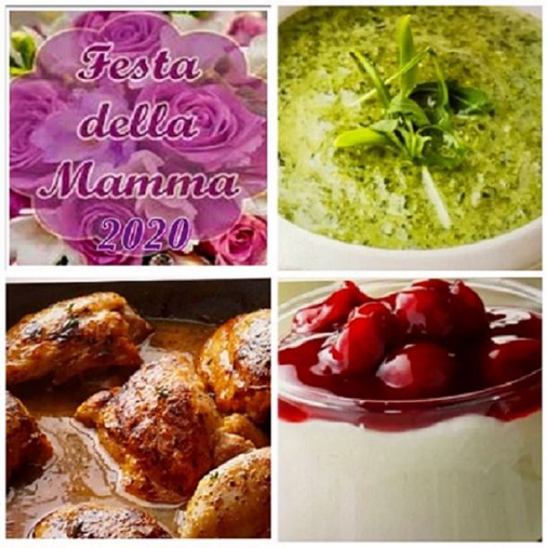 FIRENZE – Una Festa che quest’anno le mamme potranno vivere in famiglia allietando la tavola con questo menu: -Vellutata di lattuga allo yogurt -Coscette di pollo disossate glassate in salsa di mele-Cream cheese alle ciliegie( o altra frutta)