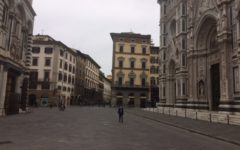 PIAZZA DEL DUOMO – Stringe il cuore a vederla deserta, senza le file di turisti in attesa di entrare nella Cattedrale e nel Campanile di Giotto, ma questa è la realtà.